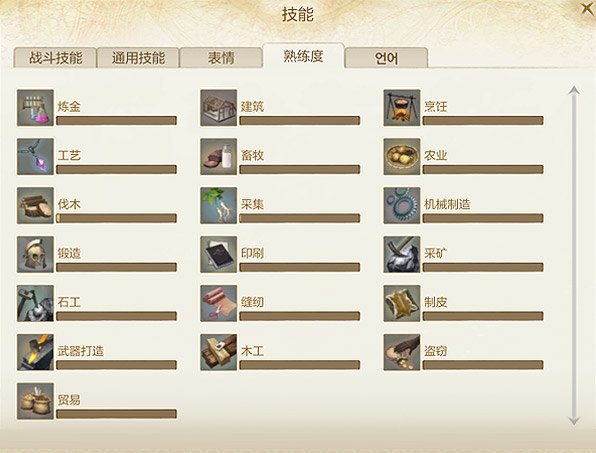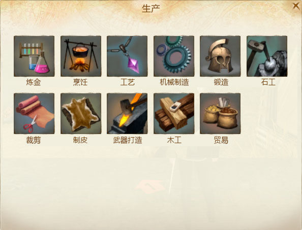生产技能是《上古世纪》的一项重要游戏内容,玩家可以通过消耗劳动力和材料方式打造武器、建造房屋、加工原材料等,获取战斗以外的游戏乐趣。游戏中目前包含了炼金、建筑、烹饪、工艺、机械制造、锻造、印刷、石工、缝纫、制皮、武器打造、木工共12种生产技能。