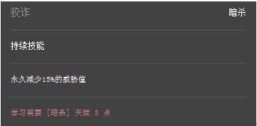 原 因:暗杀系的关键技能,能一次性最多累积6点杀气值,至于杀气值有什么用,下个技能再说。