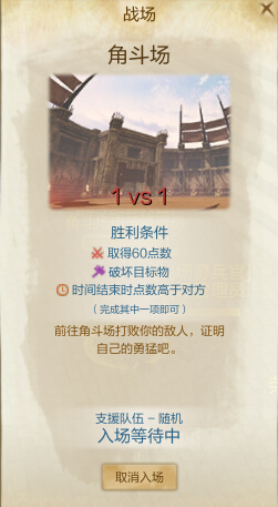 如果你选择进入竞技场,会被传送到等待室,做一些比如更换装备,被自己加好增益状态等等.总之就是要等...