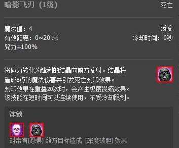 死亡的暗影飞刃打出的debuff 这个是输出类buff 注意下方的连锁 因为极度畏缩这个buff的时间非常短 用死亡天赋打架PK的人一定要注意对方出现深度畏缩效果时连上死亡束缚的技能打出最高伤害