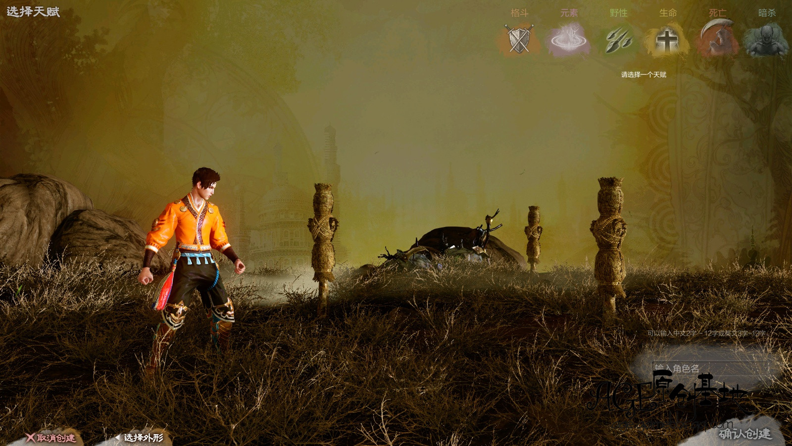 选择种族后定义玩家们自己喜欢的外形,完成后进入选择天赋界面如下图: